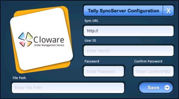 In File Path enter the path to the "export" folder pointing to the files exported from Tally (say "c:\cloware\export")